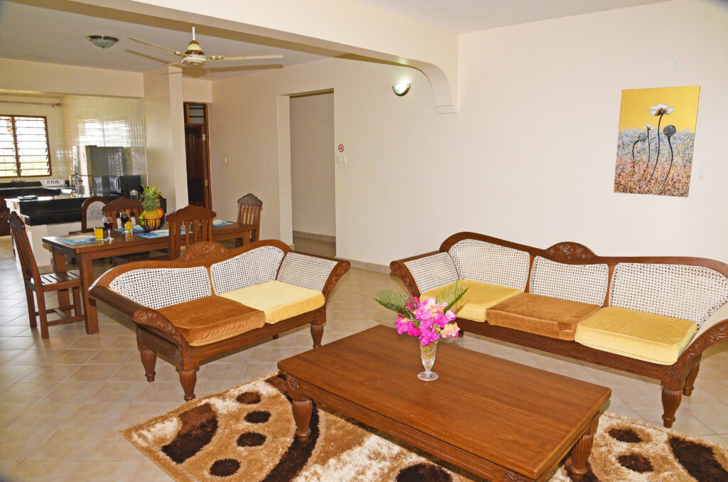 • Clean and simply apartments decorated with Swahili hardwood furniture.